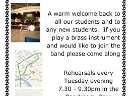 It’s that time of year again where Aberystwyth is buzzing with activity as students – new and old – return for the start of the academic year. As always students are very welcome to come along and join the band – just come along to the Tuesday night rehearsals – 7.30pm – 9.30pm in the Bandroom (Matalan carpark)