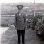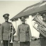 The photos show a young band member, Ivor Pemberthy, wearing one of the junior uniforms c.1954 and Jack Marsden G Trombone, George Lewis, side drummer and William Lewis Eb Bass in their British Legion uniform outside the bandroom c. 1955. Photo courtesy of John Davies.
