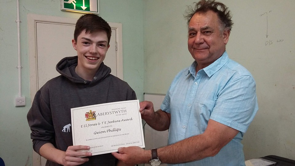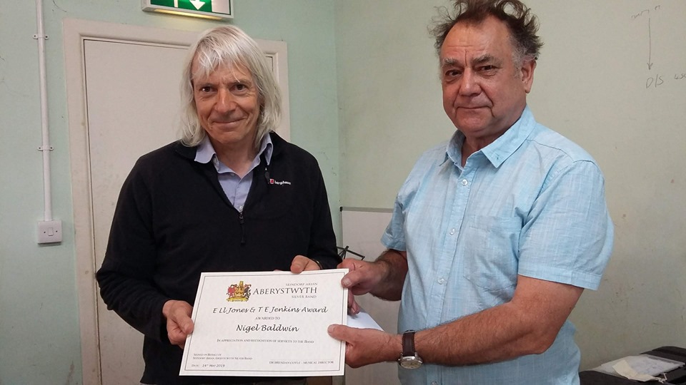 The recipients of the annual awards in memory of two of our past players were Nigel Baldwin (trombone) and Gwion Phillips (percussion). Certificates were presented by our Chairman Graham Showell.